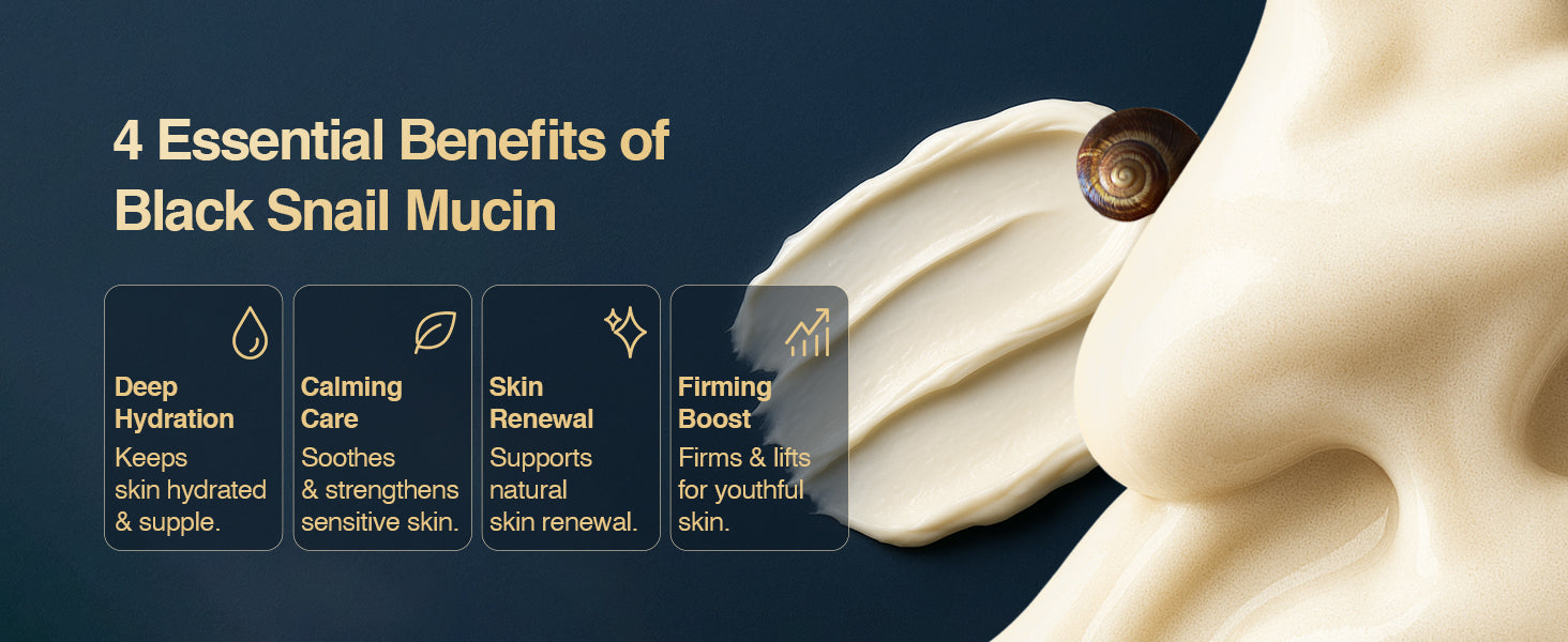 With 65% Black Snail Mucin (Snail Secretion Filtrate), this rich cream helps reset and restore skin that looks dull and fatigued, leaving it smooth, glossy, and refreshed — as if reborn.