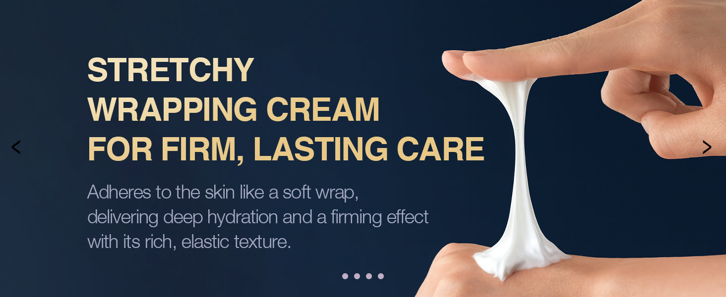 A luxuriously elastic texture that stretches without breaking, wrapping your skin in a smooth, seamless layer for a firmer, more refined complexion.